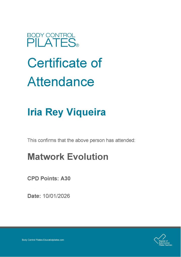No 2012, tras rematar os meus estudos como profesora de ballet, mudeime a Londres e descubrín que esa titulación non era válida alí. O que parecía un contratempo foi en realidade unha sorte: obrigoume a certificarme en Body Control Pilates, unha das escolas de referencia mundial. Ata ese momento xa levaba anos estudando o corpo e o movemento, pero foi grazas a Body Control que todo o coñecemento previo cobrou sentido. A metodoloxía, a forma de entender o funcionamento do corpo e de ensinar Pilates ordenáronse na miña cabeza, como se todas as pezas encaixasen.